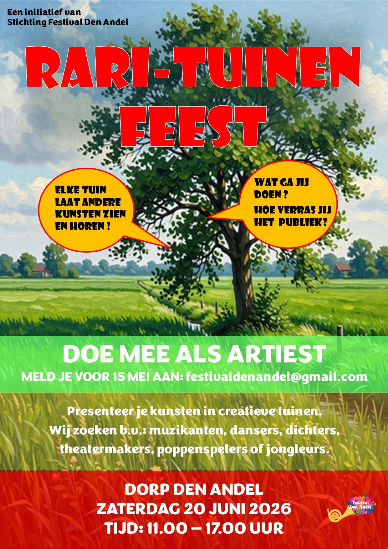 Zoals we een tijdje geleden al op onze website en social media van Festival Den Andel hebben verteld, organiseert onze stichting dit jaar geen festival begin september.Maar dat wil niet…