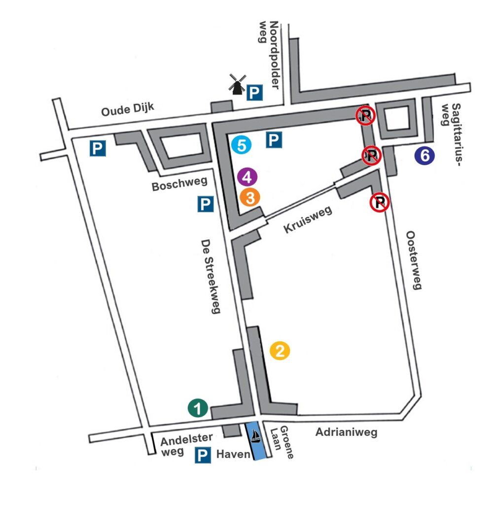 Er is beperkte parkeerruimte in ons dorp. Kom met de fiets of openbaar vervoer, bus 68 vanuit Winsum. Tussen de diverse locaties in Den Andel is het soms wel even wandelen.